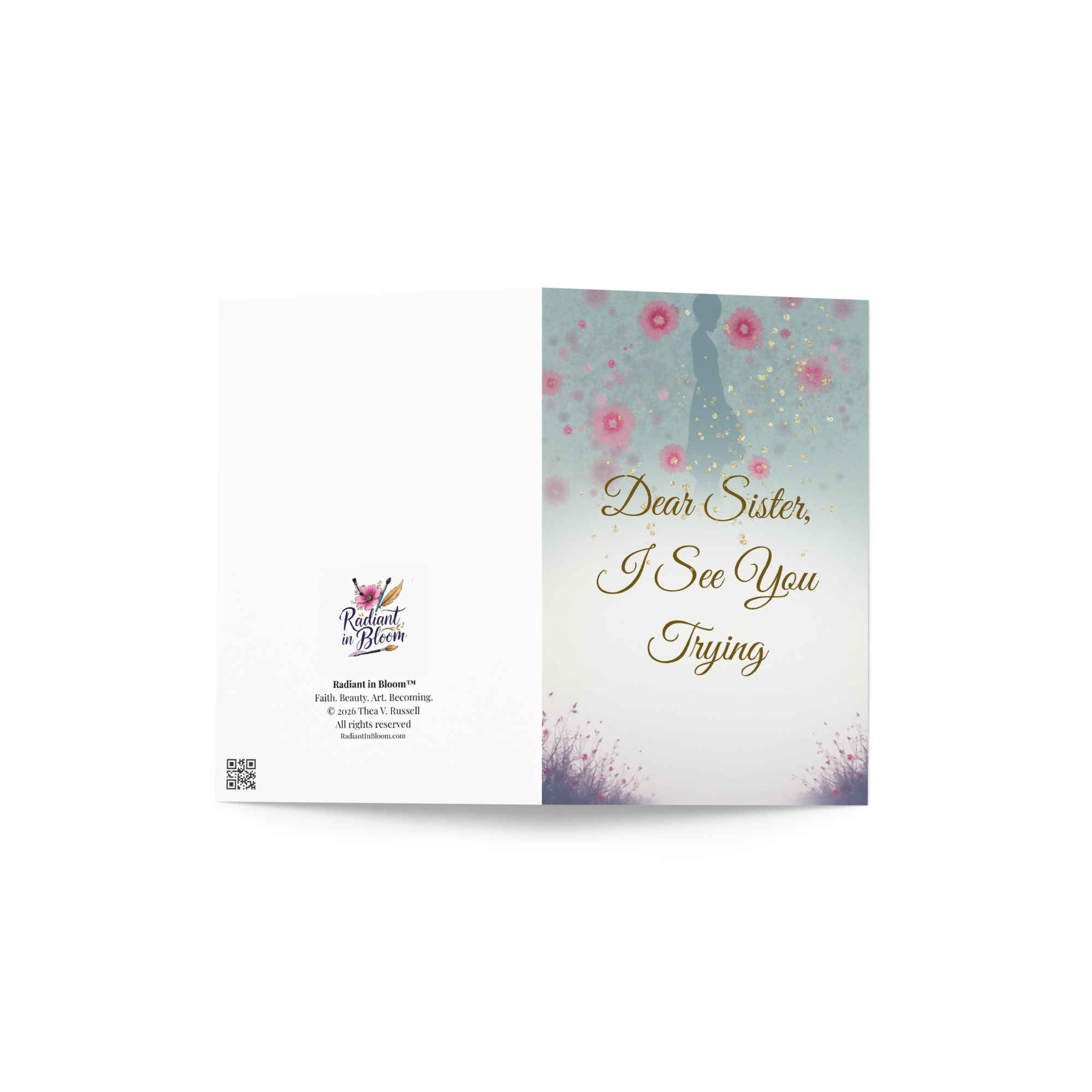 Witness and affirmation without judgement. Blank inside.