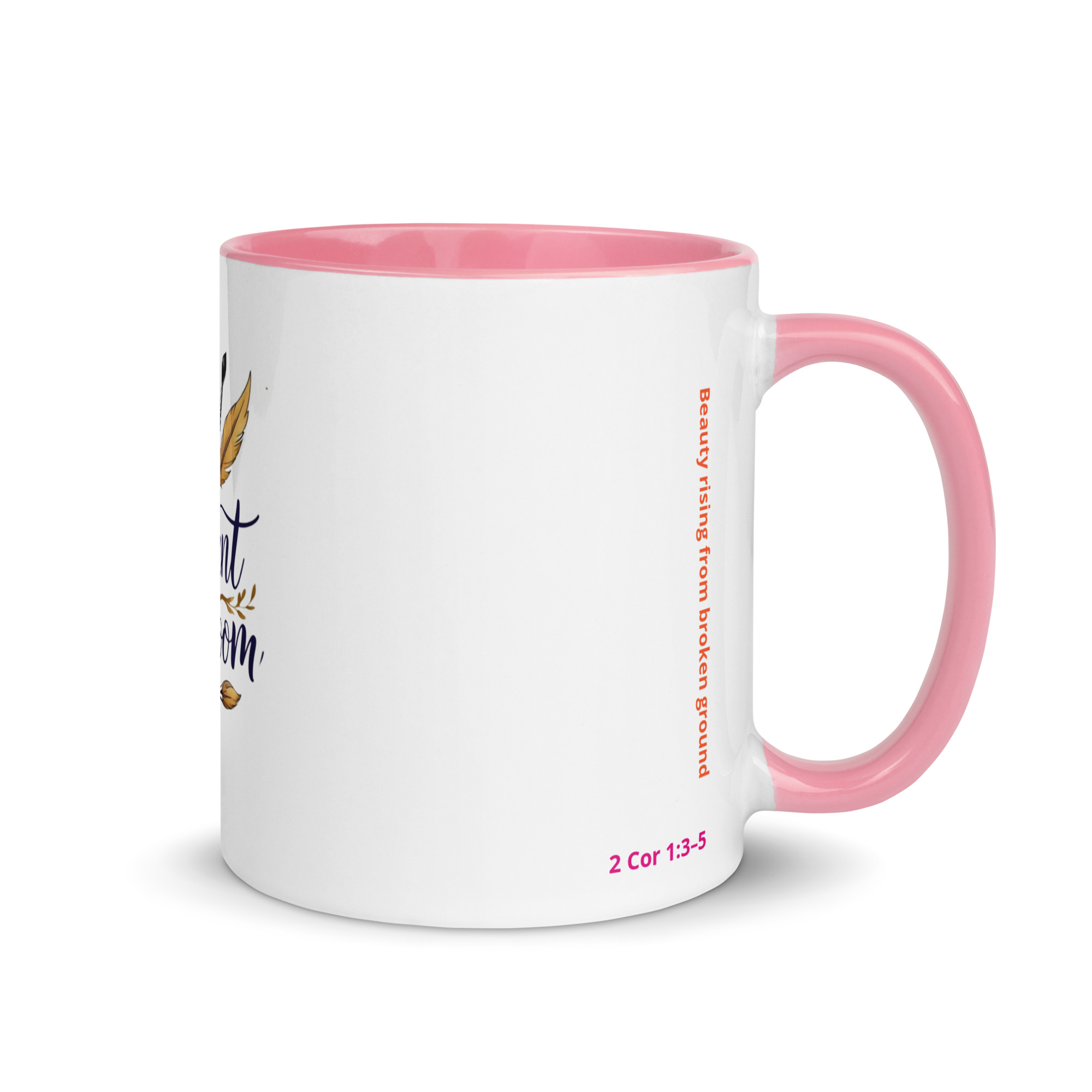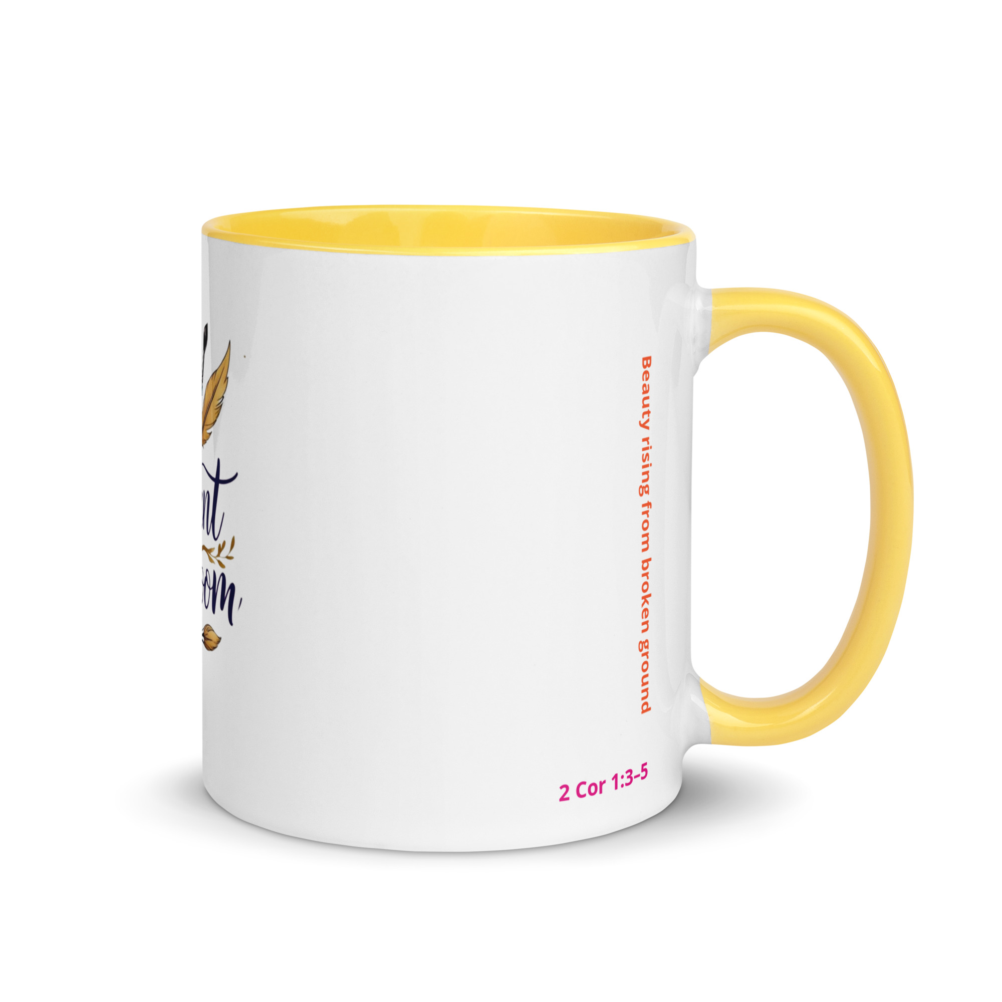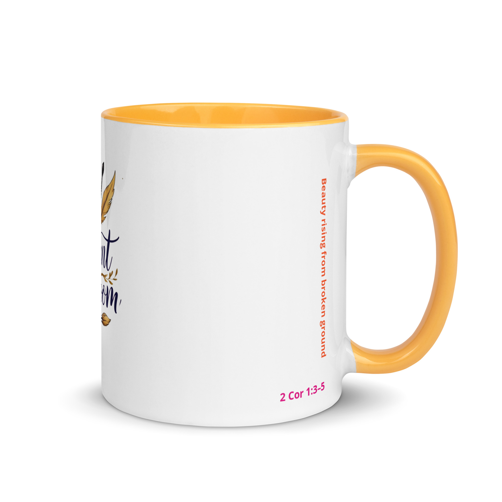 Inspired by 2 Corinthians 1:3–5, this mug represents beauty rising from broken ground. Every detail reflects the heart of Radiant in Bloom: faith, creativity, resilience, and gentle strength.