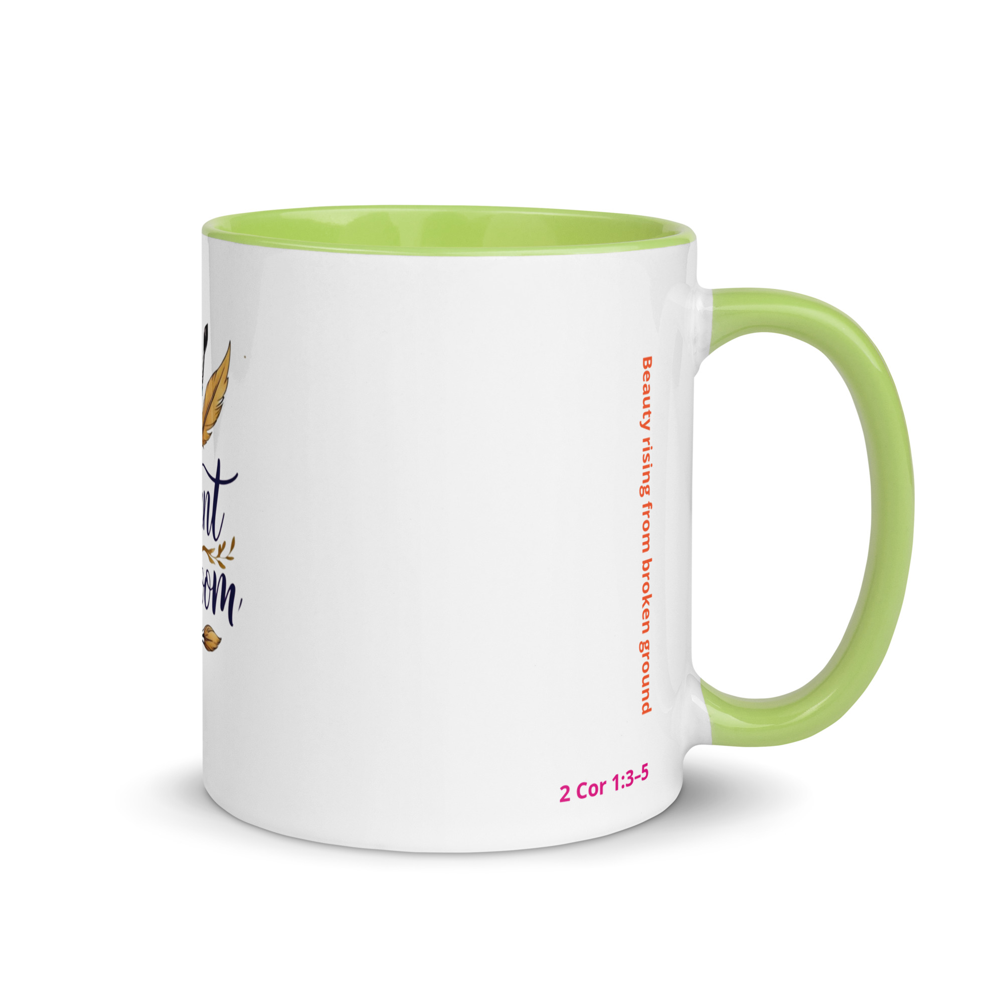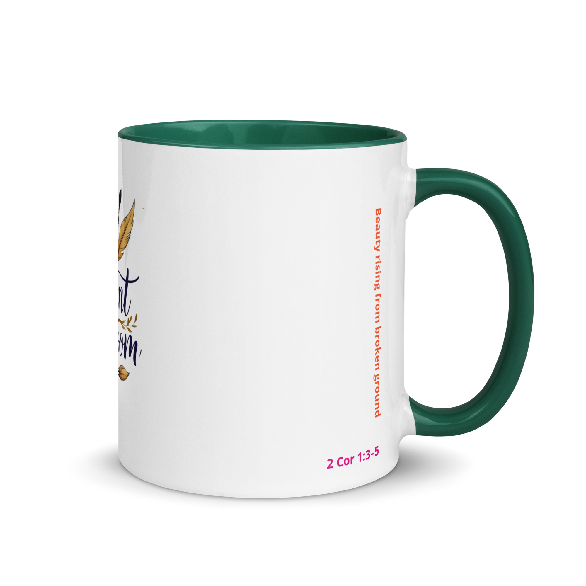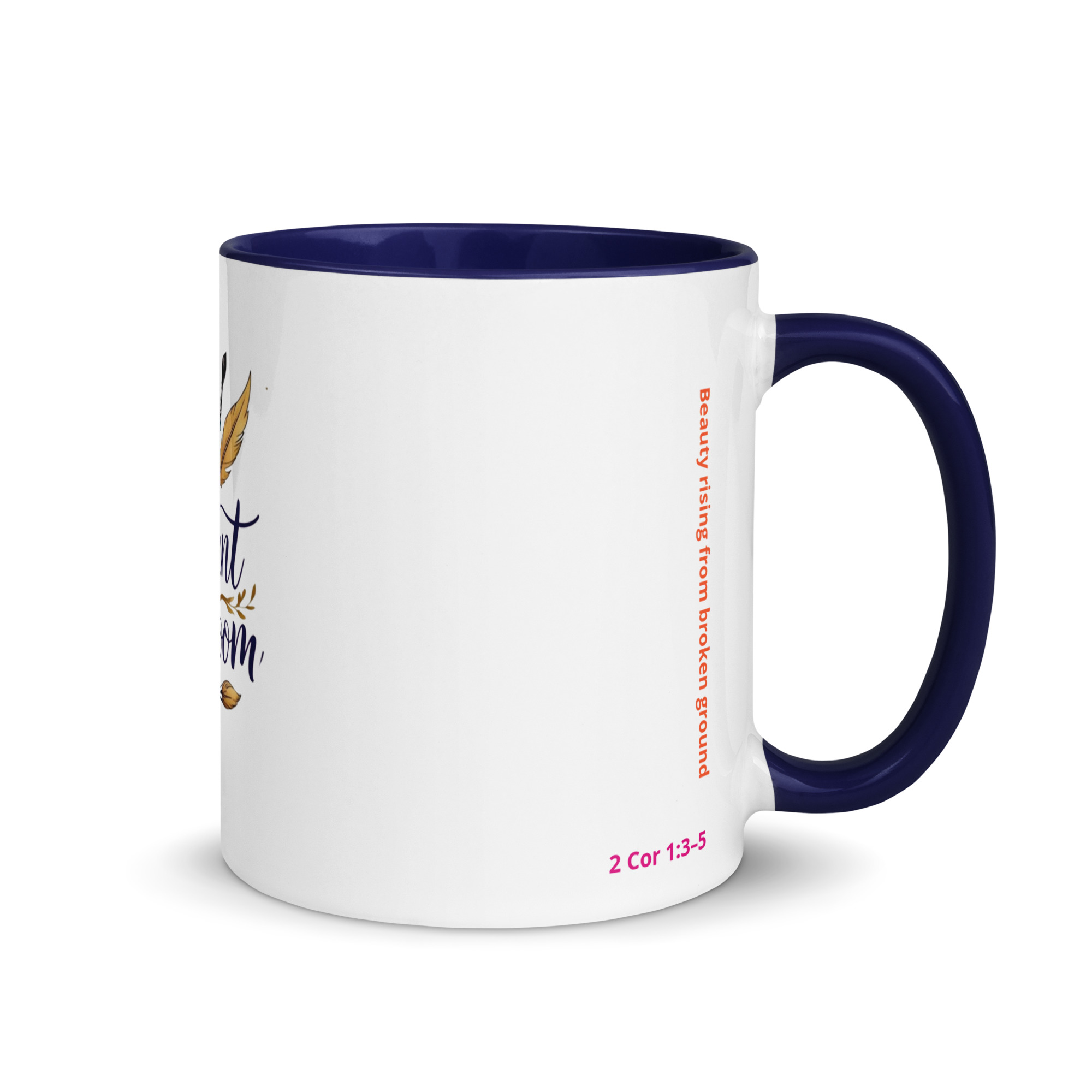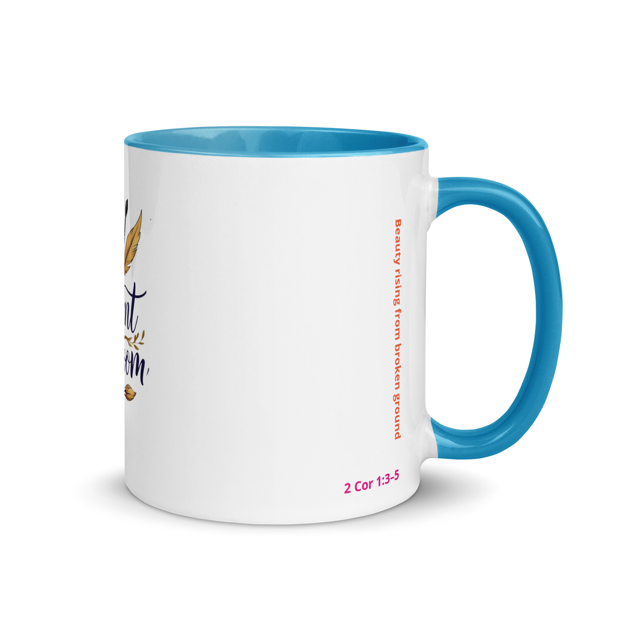 Inspired by 2 Corinthians 1:3–5, this mug represents beauty rising from broken ground. Every detail reflects the heart of Radiant in Bloom: faith, creativity, resilience, and gentle strength.