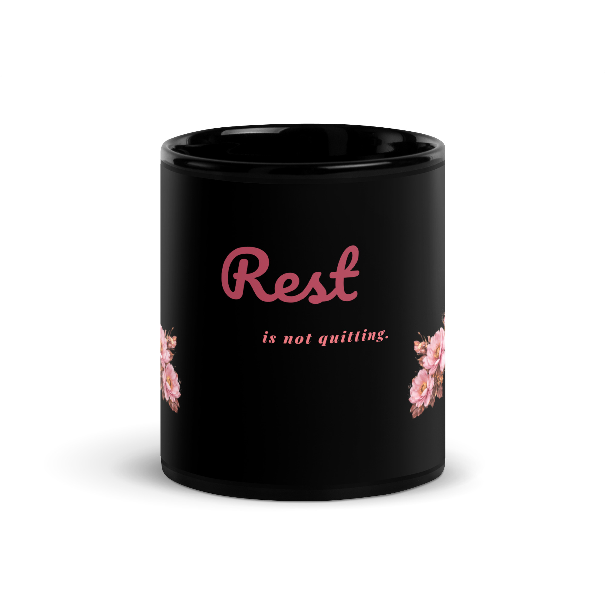 This mug carries a gentle truth in soft script—“Rest is not quitting”—framed by delicate floral accents. Designed for caregivers, creatives, and weary hearts, it’s a daily permission slip to pause without guilt.